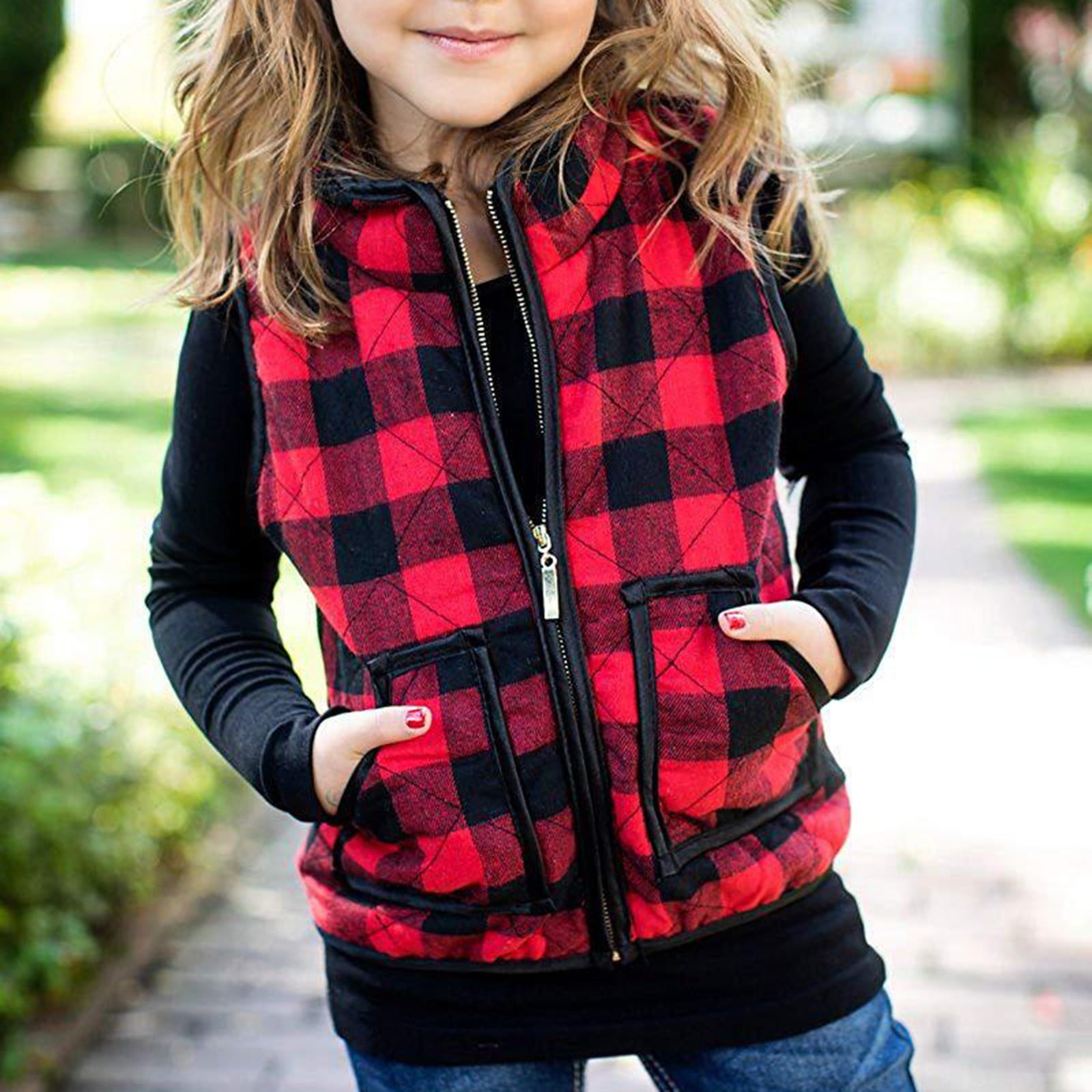 Dengdeng Baby Unisex Hooded Pockets Vest Toddler Flannel Plaid Jacket Zip Up Sleeveless Outwear 1y 5y Walmart Com