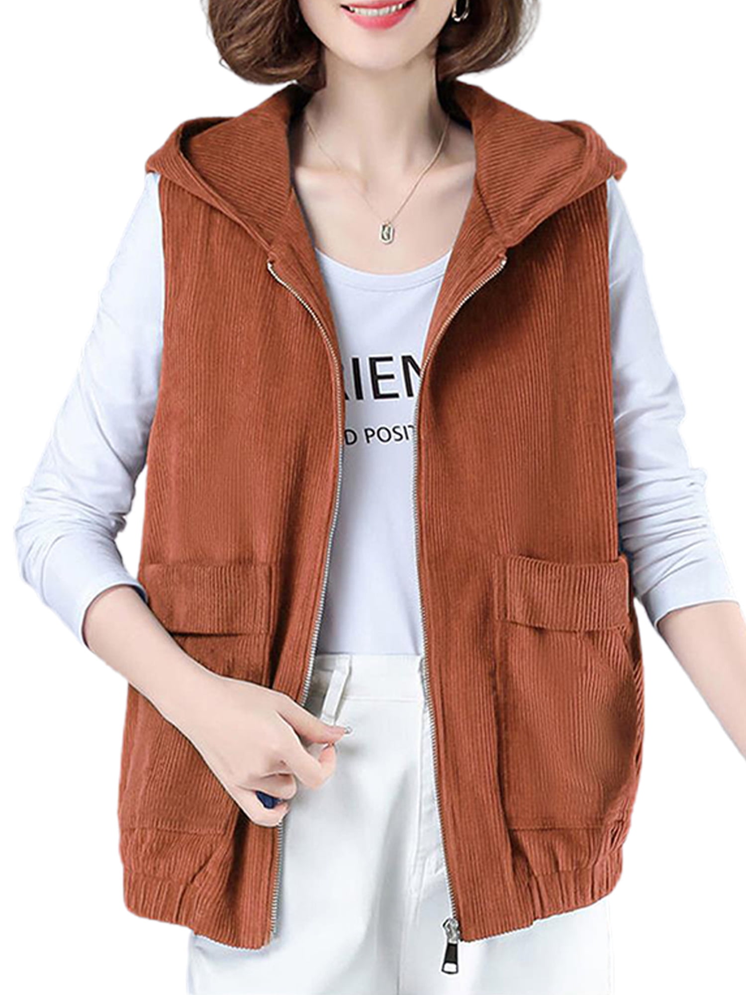 Women Casual Solid Jacket Hooded Vest Zipper Pocket Loose Sleeveless Jacket Long Coat 6 Foam Gift Boy Girl Walmart Com